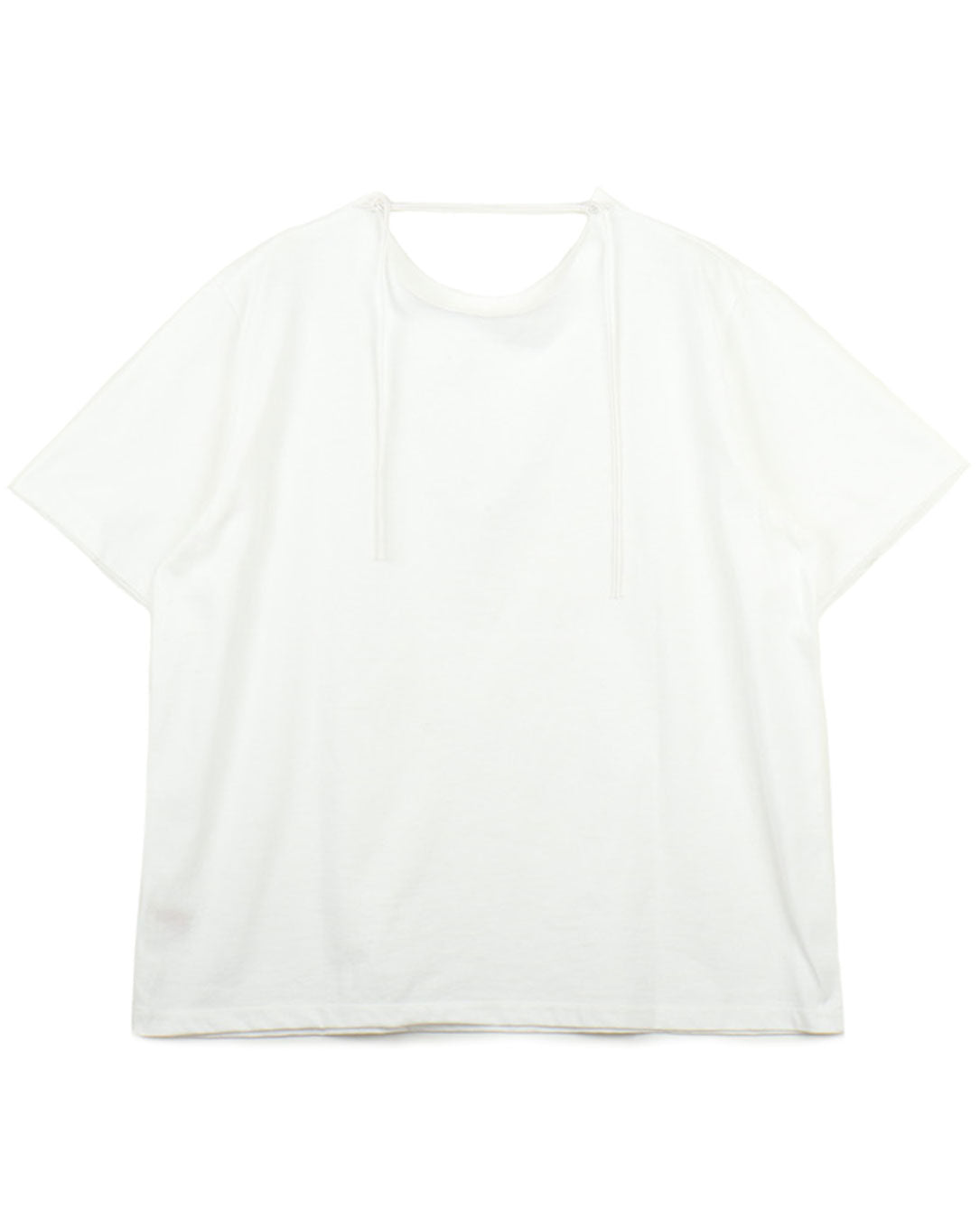 Bottleneck knit and sleeveless striped cotton pieces are sewn on the back of the shoulders and at both hems.