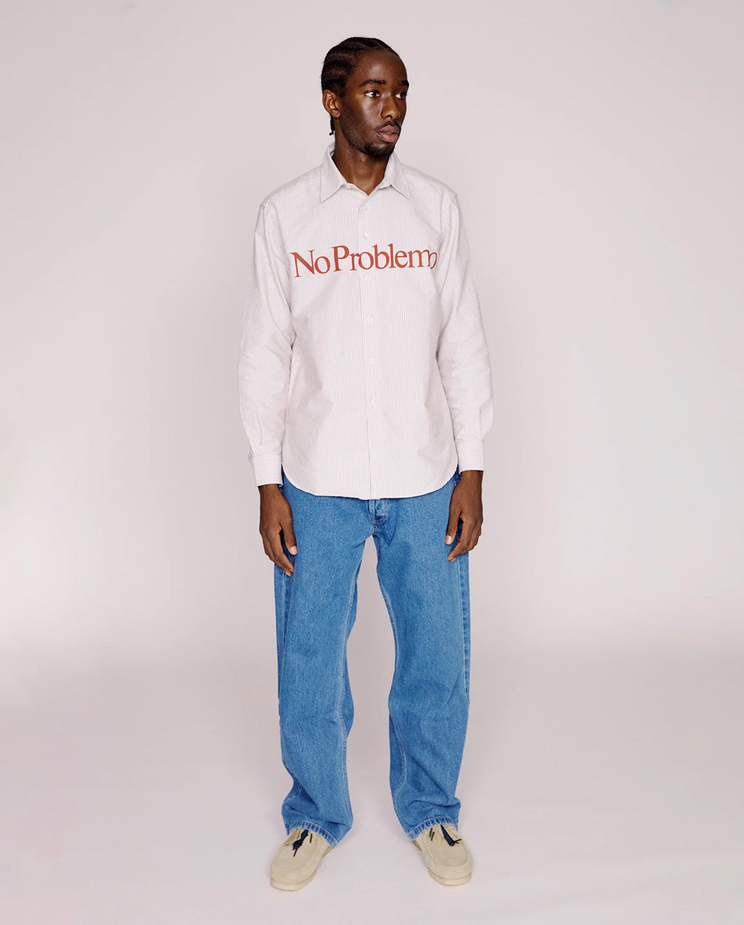 ユニセックスのヴィンテージカット90年代スタイルのスケートジーンズ。100%コットンのデニムで作られた、ゆったりとした着心地が特徴。背面にノープロブレムの刺繍、エイリアンのレザーパッチ付き。