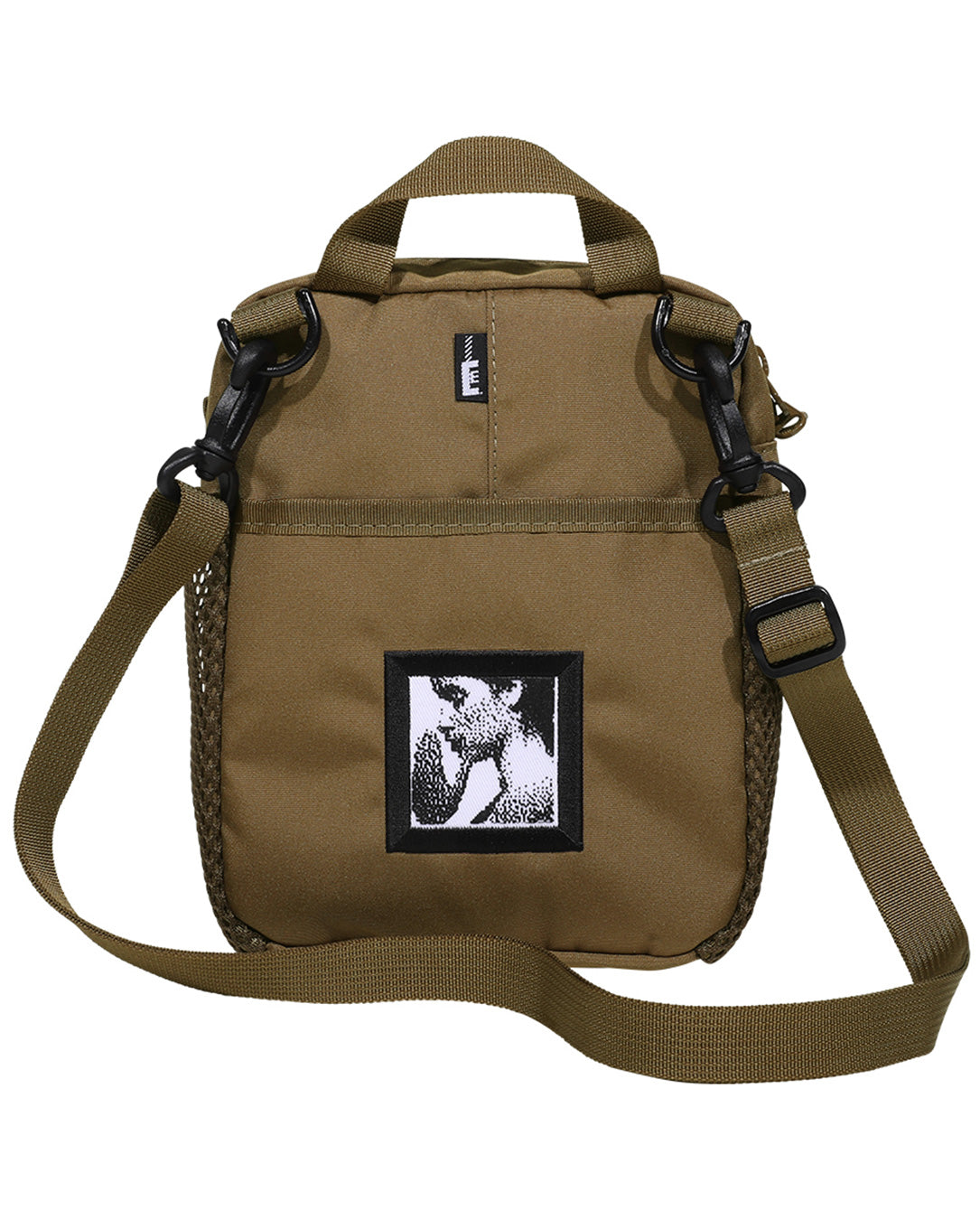 本体100%ポリエステル。コーデュラ製生地。 メッシュ100%ナイロン。フロントメッシュポケット内部に刺繍でグラフィック。バックにパッチ。両サイドにメッシュポケット。フロントメッシュポケット内部、トップポケット内部、バックにコンパートメント。W155mm×H85mm×D190mm。