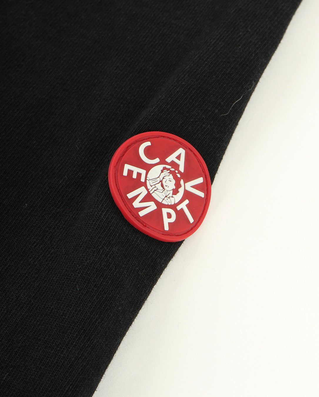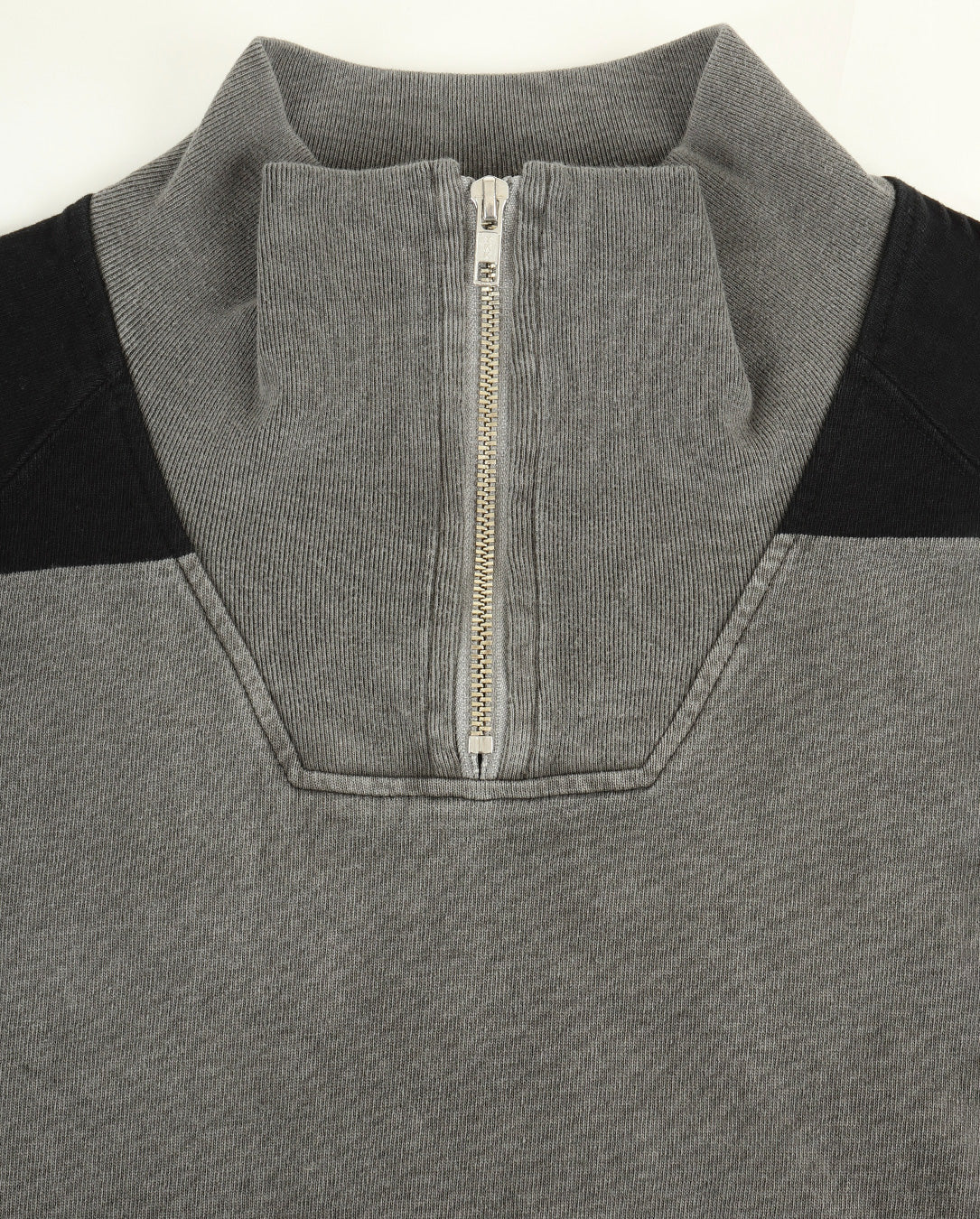 100% cotton. Jersey stripe fabric. Half-zip. Stand collar. Pullover. Raglan sleeves. Fabric patch on back panel lining. Reflective print on back panel exterior. Silicone patch on upper left sleeve. Wide silhouette. Overdye wash finish. Made in Japan.