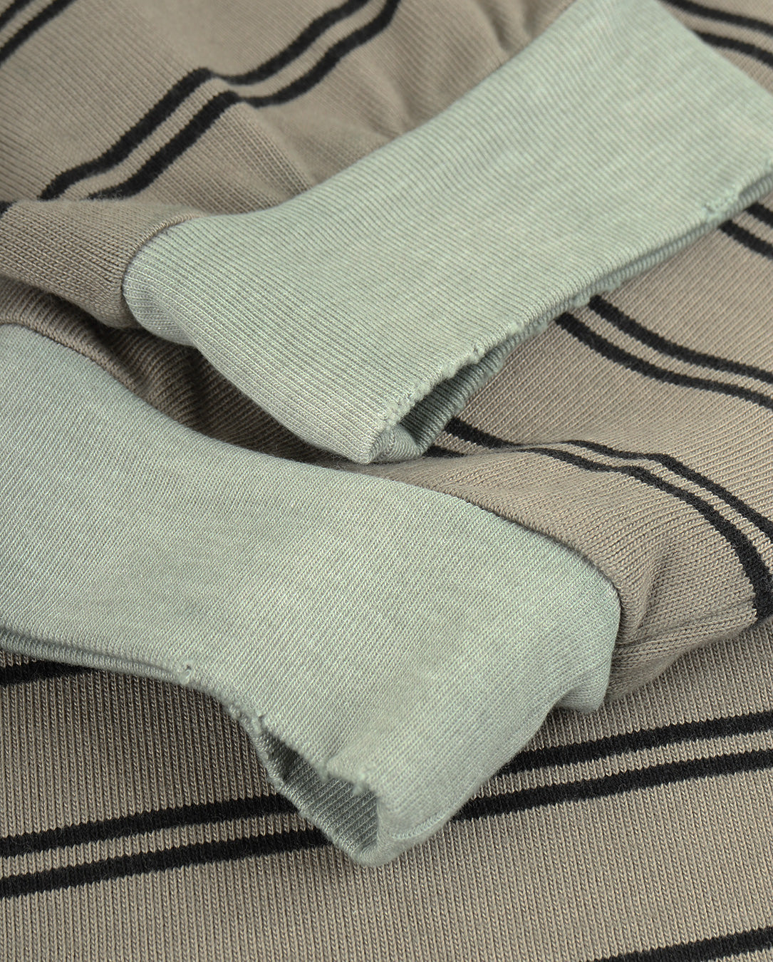 コットン100%の天竺を使用しています。製品染め加工を施しています。