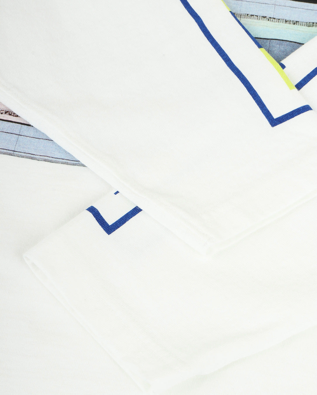 100% cotton. Jersey fabric. Pullover. Crew neck. Set-in sleeves. Graphic print on front, back, and sleeves. Side slits at hem. Oversized silhouette. Pre-washed finish. Made in Japan.