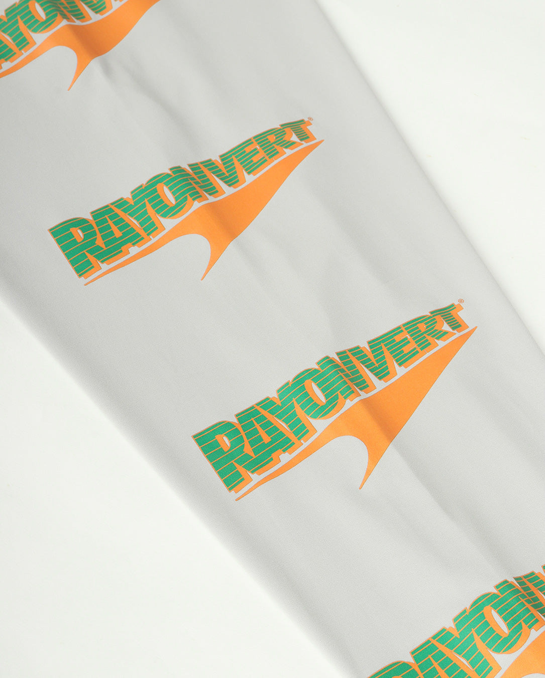 シルキーなポリアミド素材を使用したシングルステッチ仕様で、前面には2色の転写プリントが施されています。